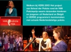 Volgende week zijn er VERS PoëzieRevues in Antwerpen en Gent en is er een VERS Debat in het Poëziecentrum (Gent). VERS in Gent Met jongeren van het Atheneum Wispelberg, Atheneum Gentbrugge en Sint-Bavohumaniora. VERS DebatOp dinsdag 17 maart om 13.00 uur worden jongeren in het Poëziecentrum Gent door presentator Rick de Leeu w uitgedaagd tot een stevig debat over poëzie en presenteren hun essays.Een gerenommeerde jury, bestaande uit Patrick Peeter s, stafmedewerker buitenland bij het Vlaams Fonds voor de Letteren en dichteressen Miriam Van hee en Sylvie Marie, kiest de beste debater en essayist uit. Zij gaan door naar het grote VERS slotdebat op woensdag 27 mei in Amsterdam. VERS PoëzieRevueOp woensdag 18 maart om 10.30 uur barst in de Kopergietery (Gent) de VERS PoëzieRevue los met dans, muziek en gedichten van en door jongeren. Tussen hun voordrachten door spinnen en tollen de dansers van breakdance groep Turn it Loose over het podium, zingt zangeres J essie Thijs de sterren van de hemel met Sam D`hondt op gitaar en draagt VSB Poëzieprijswinnaar Hester Knibbe voor uit eigen werk. André Accord presenteert het programma, met live muziek door pianist Polo de Haas en drummer Marnix Stassen. De jury, bestaande uit onder meer Hester Knibbe en Carl De Strycker, directeur PoëzieCentrum Gent, selecteert vier winnaars die doorgaan naar de grote VERS finale voor jongeren op 27 mei voor jongeren in de Stadsschouwburg Amsterdam. VERS in Antwerpen Met jongeren van het Koninklijk Atheneum Hoboken, Lyceum Deurne, Xaveriuscollege, Sint Norbertusinstituut en het Stedelijk Lyceum Pestalozzi. Op donderdag 19 maart zijn er twee VERS PoëzieRevues in Studio de Villanella. Aanvang: 11.00 en 14.00 uur. Ook te zien en te horen in de VERS PoëzieRevues: zangeres J essie Thijs en gitarist Sam D’hondt, VSB Poëzieprijswinnaar Hester Knibbe, Turn it Loose, André Accord en Marnix Stassen. Een deskundige jury selecteert per VERS PoëzieRevue vier winnaars. Zij gaan door naar de grote VERS finale voor jongeren op woensdag 27 mei in de Stadsschouwburg Amsterdam. De jury bestaat uit onder meer Hester Knibbe, Koen van Bockstal, directeur Vlaams Fonds voor de Letteren en Michaël Vandebril, coördinator Antwerpen Boekenstad. De VERS PoëzieRevues zijn gratis toegankelijk. Wel even reserveren via info@schoolderpoezie.nl of +31-(0)20 3307817. Lees hier meer over ons poëzieproject VERS 2015